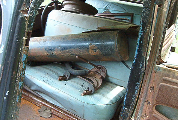 Interior: Seats and all the window trim is there. The original gauge