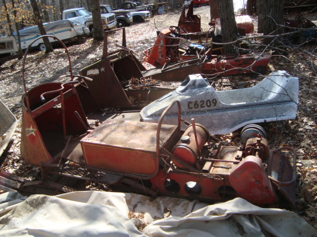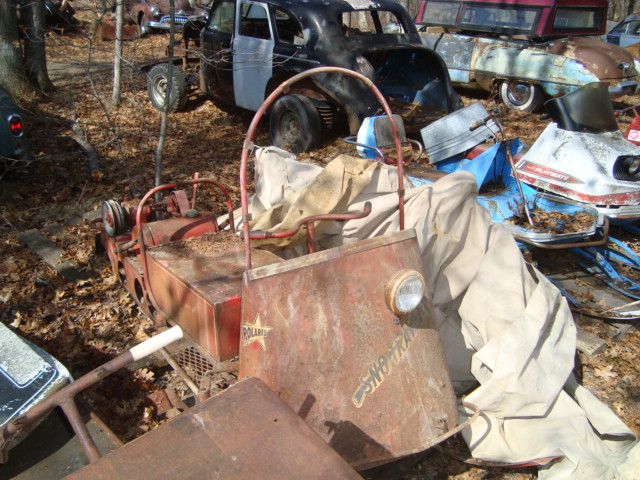 1964 Polaris K-80. This machine is an excellent restoration candidate. The machine is missing the engine, drive clutch and clutch cover. I do have engines available for a little extra. The body does have a little rust in the foot area, but it should be an easy fix. The does move a little bit, but needs to be loosened up. The transmission does work in forward and reverse. The tank does not have any rust inside. Any questions e-mail me or call 218-839-3133